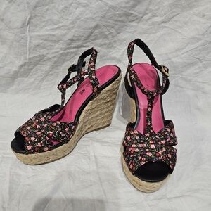 American Eagle Outfitters Black and Pink Wedge Sandals