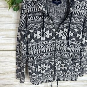 American Eagle Outfitters Black and White Aztec Batik Geometric Knit Hoodie
