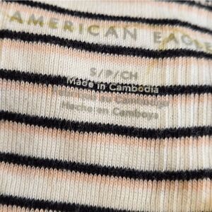Cute striped halter top from American Eagle! It's got classic thin stripes of black and white and a bit of pink and ties up around your neck. Definitely a vibe for chill days and sunny hangs.