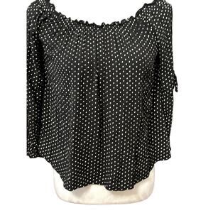 American Eagle Outfitters Blouse Off Shoulder Boho Inspired Polka Dot Black W XS