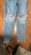 Stylish boyfriend jeans. Light blue denim. Distressed detailing on legs. Comfortable fit.