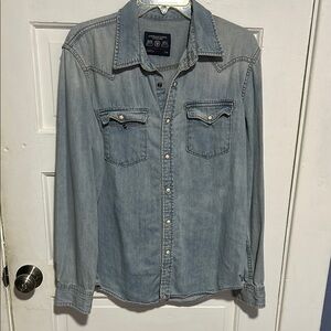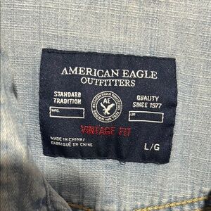 American Eagle Outfitters Blue Button Down Shirt Notched Collar