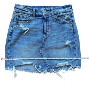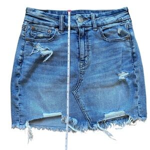 American Eagle Outfitters Blue Distressed Denim Mini Skirt