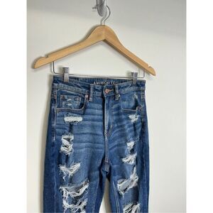 American Eagle Outfitters Blue Distressed Straight Leg Jeans