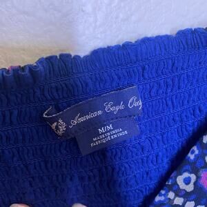 American Eagle Outfitters Blue Floral Layered Sheer Tank Top Medium. Preowned and in excellent condition. Has sheer layers with lining underneath and strappy tank, straps are adjustable. Approx measurements are in photos.