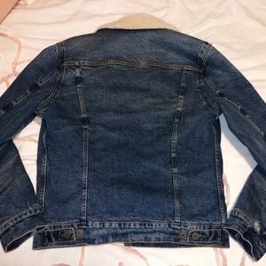 American Eagle Outfitters Blue Jean Jacket with Cream Sherpa Lining