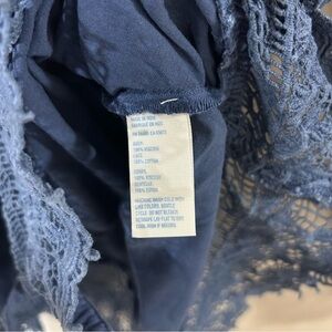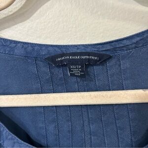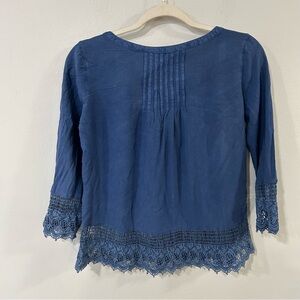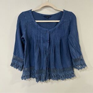 American Eagle Outfitters Blue Lace Trim 3/4 Sleeve Button Front Blouse Size XS