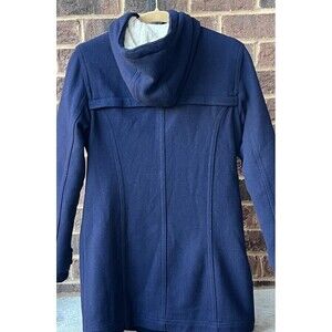 Stylish blue pea coat. Features button details and front pockets. Perfect for cool weather.