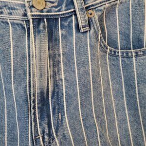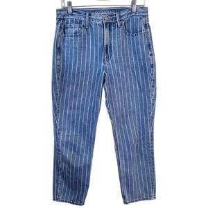 American Eagle Outfitters Blue Pin Striped High Rise Ankle Mom Jeans Size 6 Shor