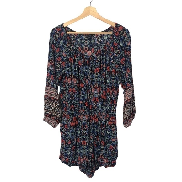American Eagle Outfitters Blue & Red Floral Long Sleeve Romper L