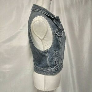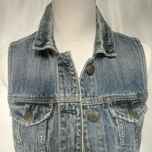 American Eagle Outfitters Blue Stone Wash Sleeveless Button Down Jean Vest