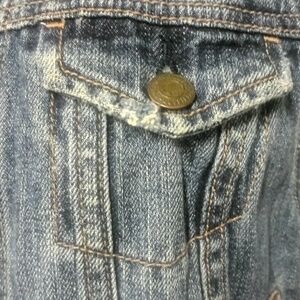 Junior's American Eagle Outfitters Blue Jean Vest. Medium Wash. Button Down Front. Two Button Chest Pockets. Some Distressing. Measurements approx. Flat Lay. Pit to Pit: 16, Pit Opening: 11, Length: 18, Size Medium.