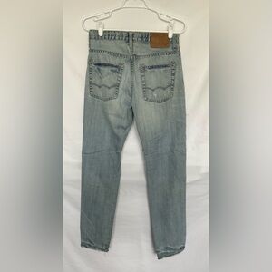 These American Eagle Outfitters jeans feature a timeless straight-leg cut in a classic blue hue. The denim showcases a naturally faded look, offering a relaxed and casual vibe. Perfect for everyday wear, they provide a comfortable and versatile fit.