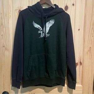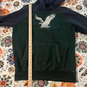American Eagle Outfitters Blue and Green Hoodie with Silver Eagle