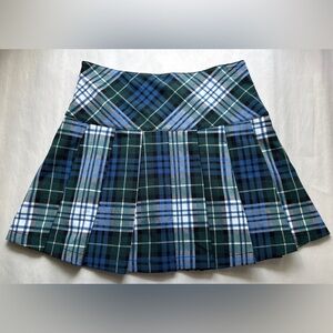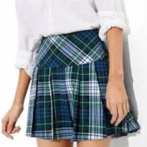 American Eagle Outfitters Blue and Green Plaid Pleated Skater Mini Skirt Sz 0