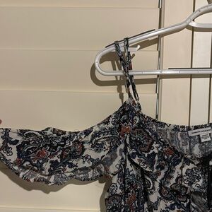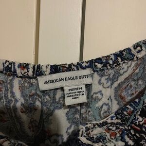 American Eagle Outfitters Blue and White Ruffled Sundress with Flutter Sleeves