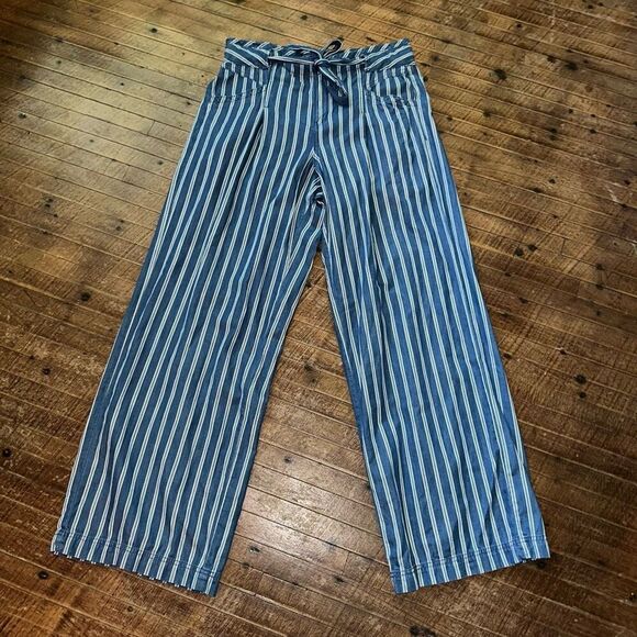 American Eagle Outfitters Blue and White Striped Wide Leg Jeans