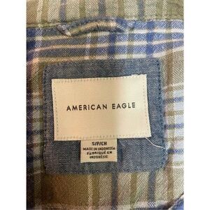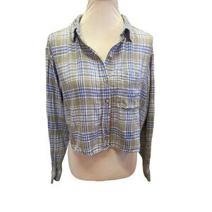 American Eagle Outfitters Blue/Green/White Plaid Long Sleeve Button Down Linen B