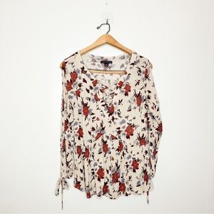 American Eagle Outfitters Boho Floral Print Lace Up Front Cold Shoulder Blouse M