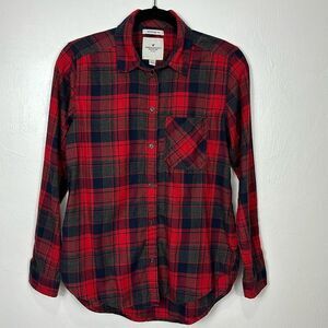 American Eagle Outfitters Boyfriend Fit Red Plaid Button Down Shirt Size S