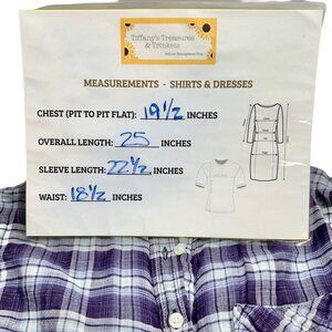 American Eagle Outfitters Boyfriend Shirt Women's S Purple Plaid Button features front chest pocket and long sleeves.