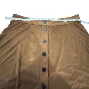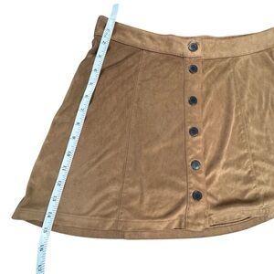 American Eagle Outfitters Brown Camel Faux Suede Snap Front Mini Skirt Size 8