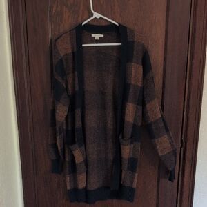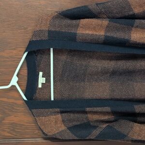 American Eagle Outfitters Brown & Navy Checkered Soft Long Cardigan Size XS