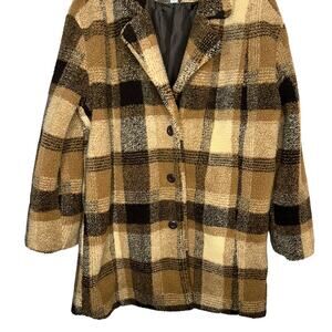 American Eagle Outfitters Brown Plaid Sherpa Teddy Coat Pockets Size Large