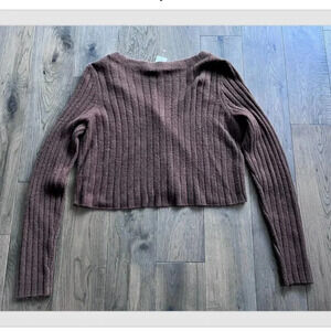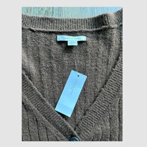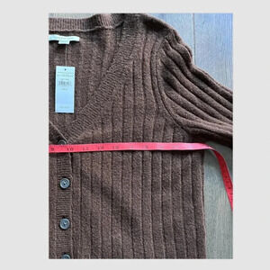 Cozy ribbed cardigan with button front. V-neck design. Perfect for layering.