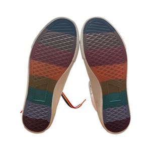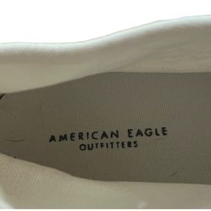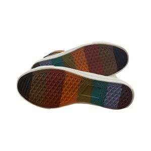 Show your Pride with these American Eagle Outfitters canvas high tops in white with rainbow accents. These shoes feature a high top shoe shaft style and lace-up closure for a secure fit. The 100% cotton upper material is soft and comfortable, while the fabric insole adds cushioning for all-day wear. These sneakers have a standard shoe width and a rubber outsole for durability and traction. The rainbow details on the laces, eyelets and soles add a pop of color and are perfect for those who love rainbow or pride themes. These shoes are customized and perfect for athletic activities or casual wear. Order now and add a fun and colorful twist to your shoe collection.