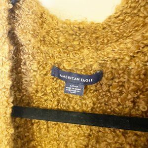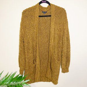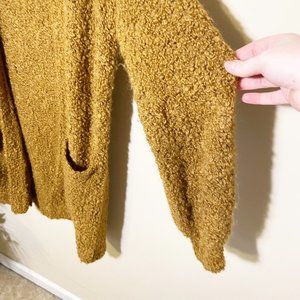 Cozy open-front cardigan. Soft knit texture. Perfect for layering. Camel color.