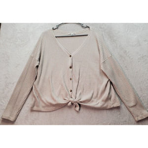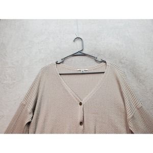 American Eagle Outfitters Cardigan Womens Medium White Waffle Button Front Knot