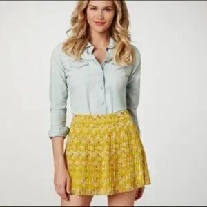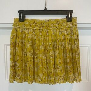 American Eagle Outfitters Chic Yellow Floral Feminine Pleated Mini Skirt, 0 / XS