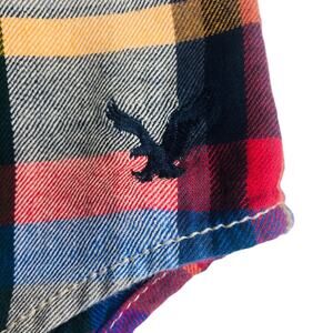 American Eagle Outfitters Classic Fit Plaid Button Front Shirt Long Sleeve Logo on bottom hem