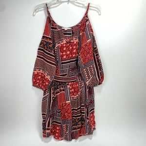 American Eagle Outfitters Cold Shoulder Dress Multicolor Patchwork Boho Medium M