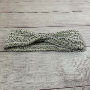 Headband ear warmer by American Eagle Outfitters. This knit headband has stripes of cream and taupe with flecks of black and metallic strings. The ear warmer is ruched at one point creating a bow-like design. It is pre-owned and like-new.