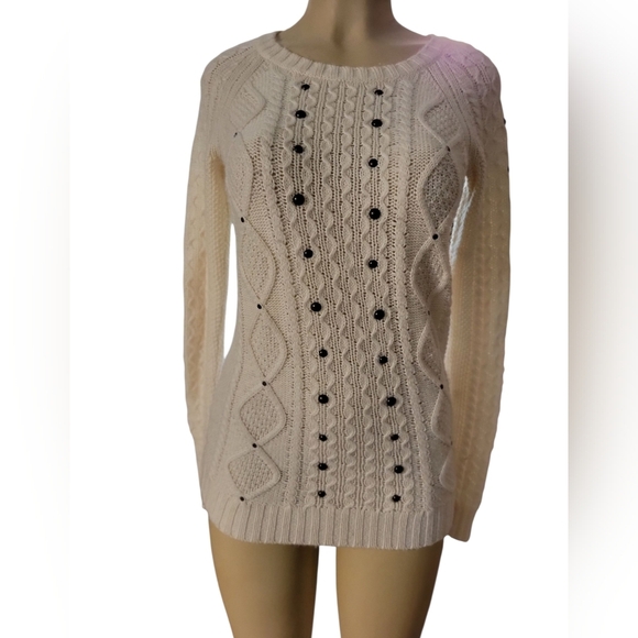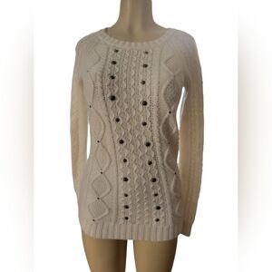 American Eagle Outfitters Cream Crew Neck Cable Knit Sweater Pullover