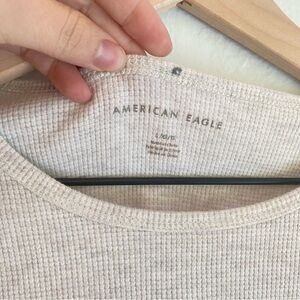 This cream crop t-shirt from American Eagle Outfitters features a fitted design with short sleeves, perfect for a stylish and comfortable look. The soft, lightweight fabric offers a natural drape, making it an ideal choice for casual outings. Its classic crew neckline adds a timeless touch to this trendy top.
