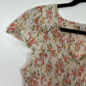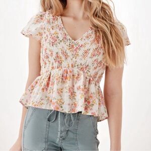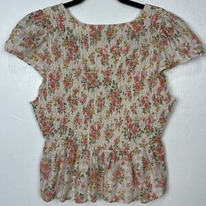 American Eagle Outfitters Cream Floral Print Peplum Top Size M