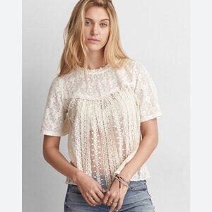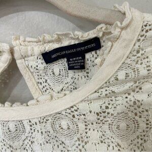 American Eagle Outfitters Cream Pleated Lace Bib Collar Blouse Size Small