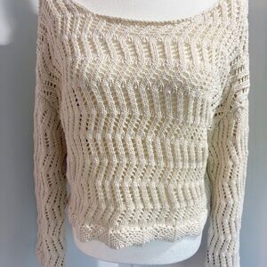 American Eagle Outfitters Crochet Knit Fisherman Sweater Size Medium Wide Sleeve