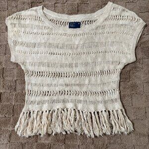 American Eagle Outfitters Crochet Woven Tassel Fringe Boho Top Oatmeal S