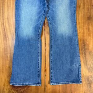 Stylish skinny boot-cut jeans. Classic blue wash. Comfortable fit.