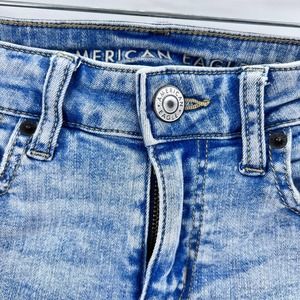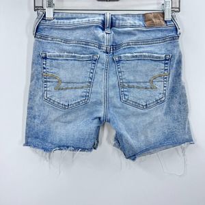 American Eagle Outfitters CutOff Shorts Light Wash Frayed Midi Size 0 Denim