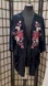 American Eagle Outfitters DARK BLUE VELVET FLORAL EMBROIDERED SHORT KIMONO XS