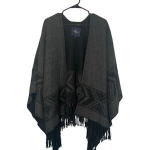 American Eagle Outfitters Dark Gray Boho Fringe Trim Cardigan Women Sz OS