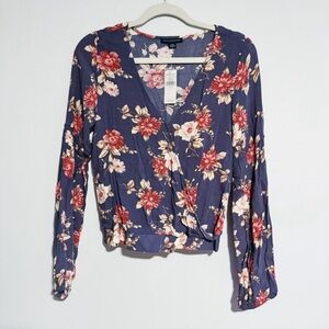 American Eagle Outfitters - Dusty Purple Floral Print Long Sleeve Blouse