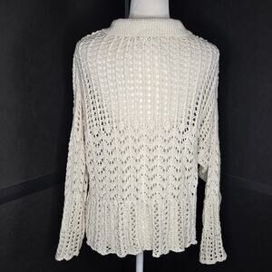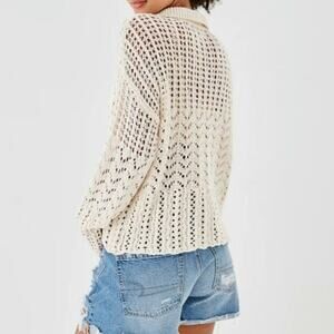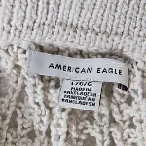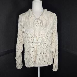 American Eagle Outfitters EUC Open Knit Crochet polo Sweater Cream Large cream