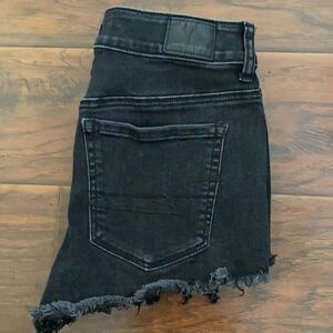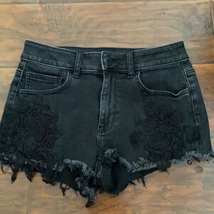 American Eagle Outfitters Factory Faded Lace Hi-Rise Shortie Shorts, super super stretch, size 4, distressed style, frayed hem.