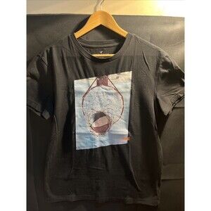 This American Eagle Outfitters Flex T-shirt is a vintage piece from 2010-2019, featuring a black color with a graphic print on the front. Made of a blend of polyester and cotton in a knit fabric type, this shirt has a crew neck and short sleeves, offering a regular fit in size medium. With the brand's logo as an accent, this classic-themed tee is machine washable and suitable for all seasons, making it a versatile wardrobe staple for men.